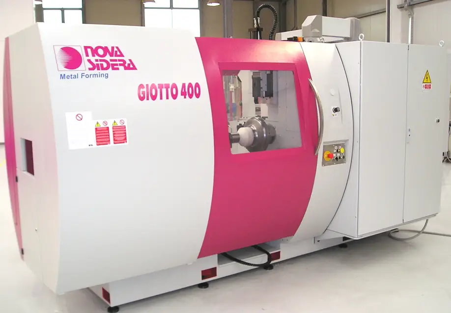 Il tornio Giotto 400: per la deformazione di alluminio, ferro, acciao inox di spessore fino a 3mm su diametri fino a 1000 mm. Particolarmente adatto per articoli di medie e grandi dimensioni.